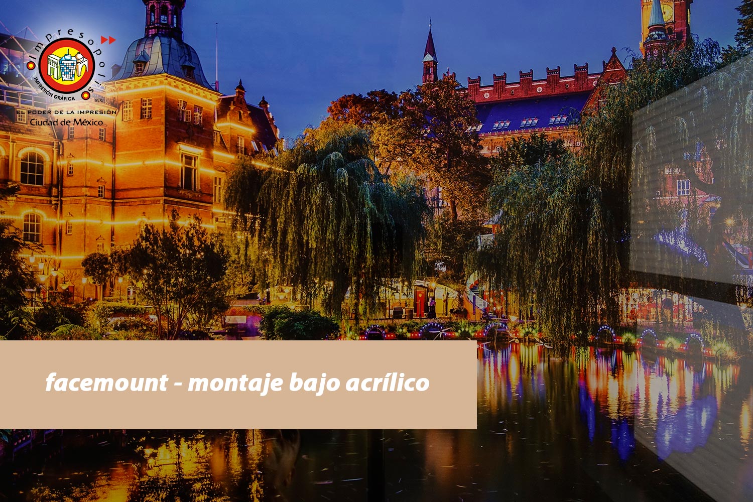 Para la conservacion de la impresion fotografica, el FACEMOUNT o montaje bajo acrilico, es la tecnica mas popular. Protege y embellece las piezas fotograficas y de arte